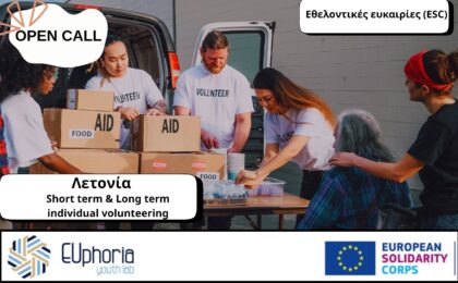 Τίτλος: Young European and Citizen Τύπος: Ατομικός Εθελοντισμός Πού: Prades, Γαλλία Πότε: 01.09.2025-27.02.2026 Ποιοί: 1 άτομο 18-30 ετών. Στόχος του προγράμματος αυτού είναι η προώθηση της ενεργής ευρωπαϊκής ιδιότητας του […]